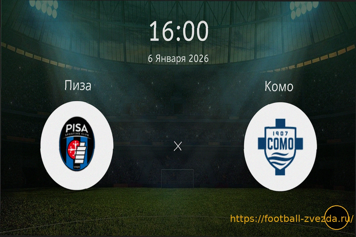 На этом кадре запечатлен ключевой момент футбольного матча между командами «Комо 1907» и «Пиза Спортинг Клуб», состоявшегося в рамках 30-го тура итальянской Серии А сезона 2025/26. В начале встречи, уже на 7-й минуте, игрок Диао открыл счет, забив гол, который вывел «Комо» вперед со счетом 1:0.