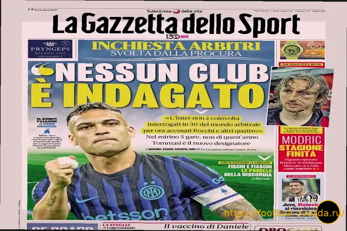 Первые полосы ведущих спортивных газет посвящены, прежде всего, теме судейства, которая привлекла к себе пристальное внимание после вчерашних новостей. Издание TuttoSport, в свою очередь, акцентирует внимание на ситуации вокруг туринского «Ювентуса» и нападающего Душана Влаховича.