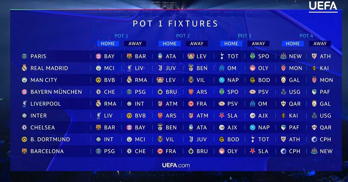 Как и в прошлом году, ПСЖ вновь встретится с мюнхенской «Баварией» под руководством Винсента Компани на групповом этапе, причем в этом сезоне матч пройдет на «Парк де Пренс». Для нынешнего главного тренера Луиса Энрике, который ранее возглавлял «Барселону», также предстоит долгожданный выездной матч против каталонского клуба. Кроме того, действующие чемпионы Лиги 1 и Лиги чемпионов примут два клуба Премьер-лиги: «Ньюкасл Юнайтед» и «Тоттенхэм Хотспур», причем последний был мучительно близок к победе над ПСЖ в Суперкубке УЕФА.